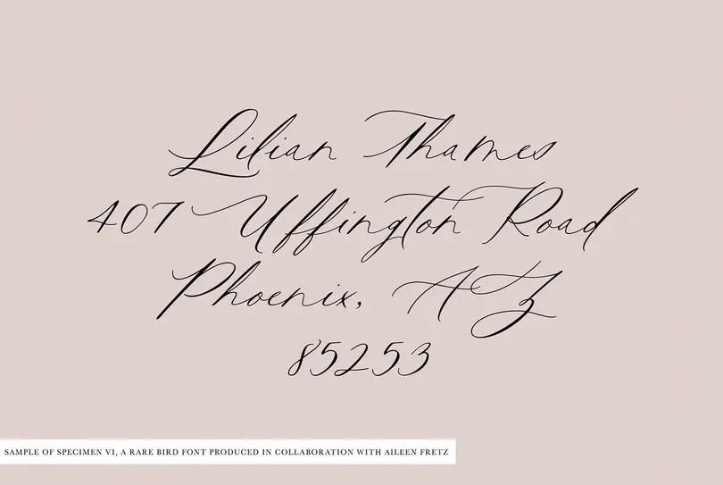 Für Jessica McCarty war die Suche nach dem eigenen Blickwinkel ein wesentlicher Erfolgsfaktor. McCarty gründete die Magpie Paper Works, eine Schriftschmiede, die sich auf digitalisierte Handschriften und Exklusivschriften spezialisiert hat. Sie ist der Ansicht, dass es der Austausch mit den Menschen war, der sie im Geschäft gehalten habe. Nach einer Karriere in der Werbung begann McCarty damit, als Zweitjob Hochzeitseinladungen zu entwerfen, parallel zum Tagesgeschäft. Auf der Suche nach einer passenden Schrift für ein Projekt – auffällig, modernen-kalligrafisch aber nicht zu „digital“ – entschied sich McCarty irgendwann dazu, es selbst zu machen. „Ich dachte mir: Wie schwer ist das eigentlich?“, erzählt sie uns. „Heute weiß ich: Sehr schwer!“
