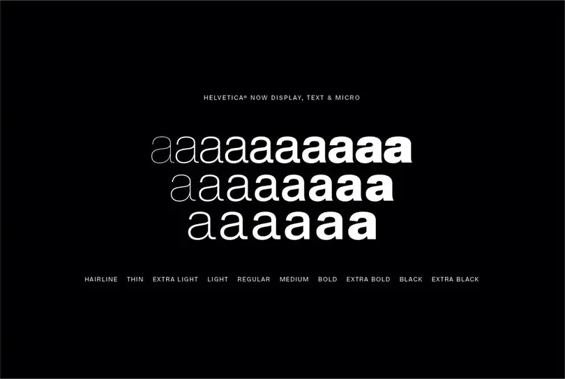 Helvetica Now offers Micro, Text and Display sizes, each of which is tailored to a particular environment—unlike Neue Helvetica, which was drawn and spaced for use in text type.