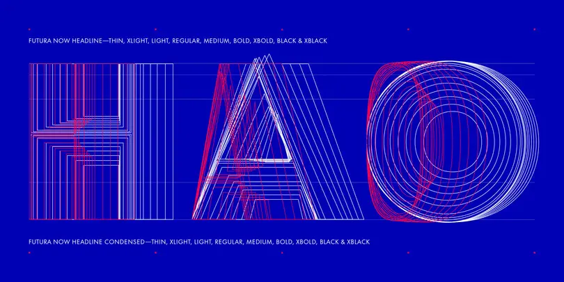 Futura Now is what Futura needs to be in today’s demanding typographic world. It addresses the inconsistent spacing that plagued previous digital versions, and overhauls the typeface’s range of weights and nomenclature—meaning the Ultra Bold is as inky, and the Thin as delicate, as you’d expect from their names. Futura Now also re-introduces true italics, rather than the slanted romans, or obliques, found in other versions. (Obliques are created by literally slanting the original upright design, which causes shapes to become distorted. Futura Now italics are true to the original and preserve the geometric rhythm of the design.)