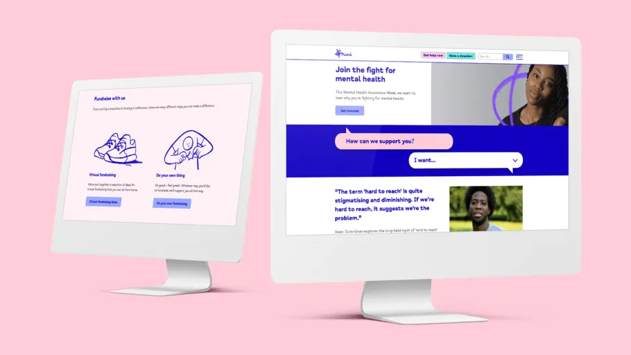 DesignStudio had already developed a new palette of colours that would represent the “fighting spirit” of Mind; adaptable enough to be softer in tone where needed, and more vibrant when a punchier tone of voice was required. This reflected the broad spectrum of Mind’s mission – which includes providing support as well as holding the government and policy makers to account.