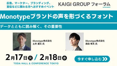米国 Monotype Imaging Inc.の日本法人Monotype株式会社(東京都港区、以下 Monotype)は、2月17日(火)開催のKAIGI GROUP フォーラムに参加いたします。