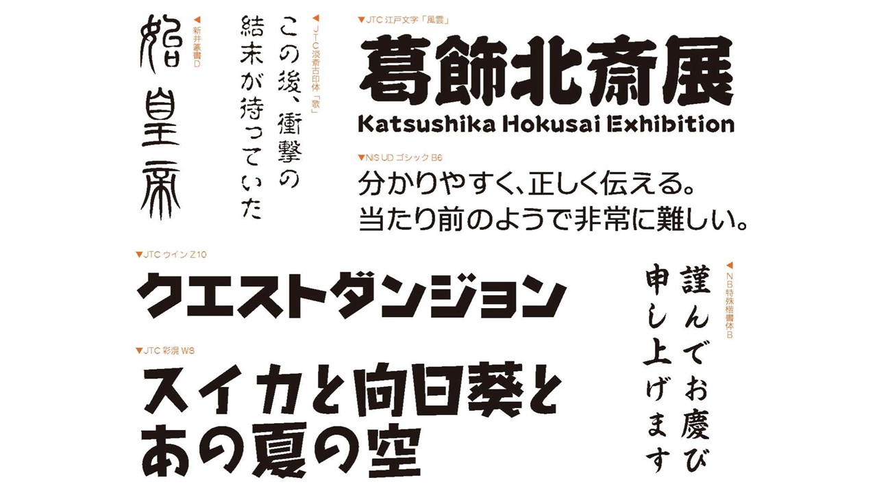 NIS Fontは様々な媒体で活用されております。文字の美しさを最も表現できるフォントです。数書体をピックアップした使用イメージの参考となるフォントをご紹介いたします。