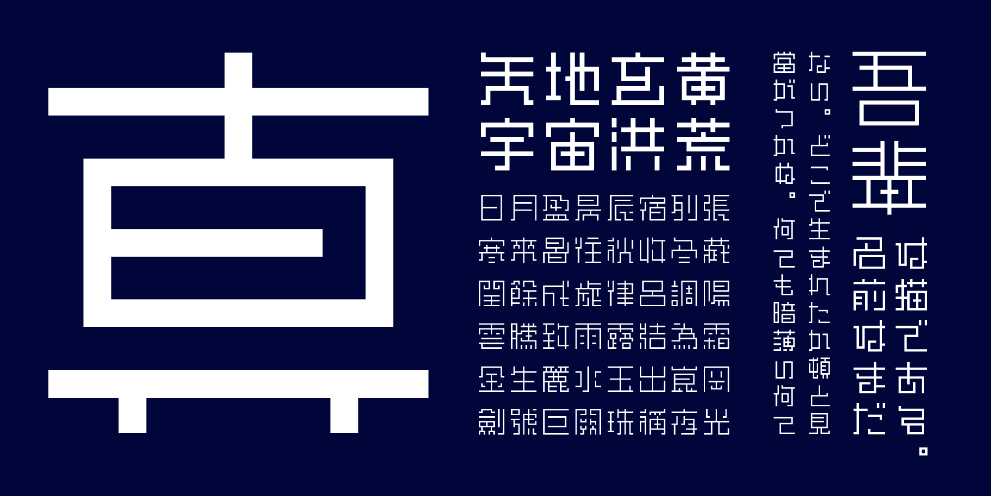 【もじとデザイン社(moji.design)】のご紹介 もじとデザイン社は、独創性あふれる真四角書体を展開するファウンダリです。真四角書体は江戸文字「角字」にインスパイアされ、正方形の中を水平・垂直の直線だけで構成した幾何学的なスタイルを特徴としています。伝統の造形を受け継ぎつつ、現代の生活空間に自然に溶け込む、シンプルで親しみやすいデザインの書体です。 |