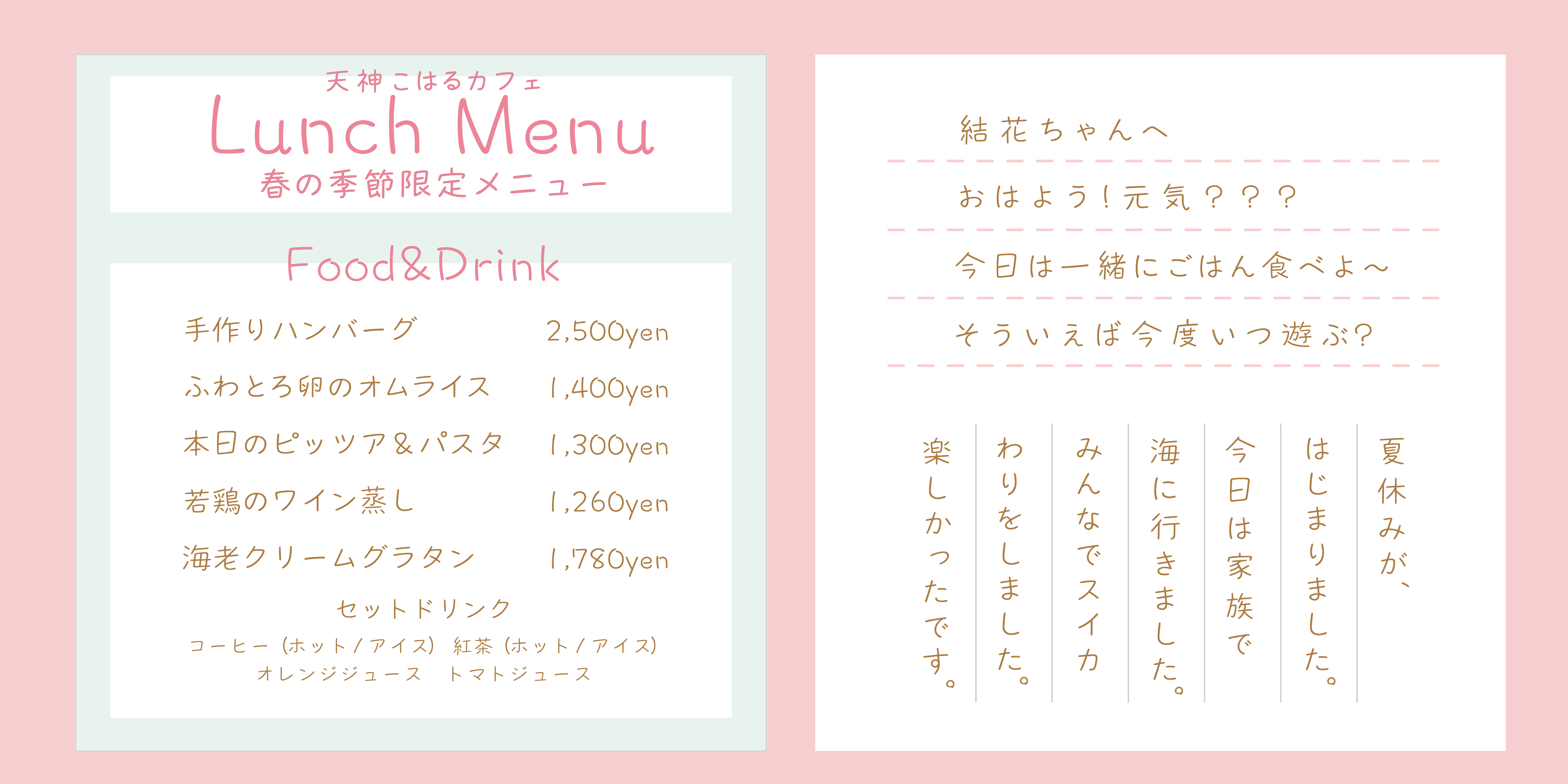 こはるたいぷは、ノートやちょっとした手紙などに書いたような手書き風のデザインを目指しました。どこか温かみがあって、飾らない自然な雰囲気を感じられるのが特徴です。