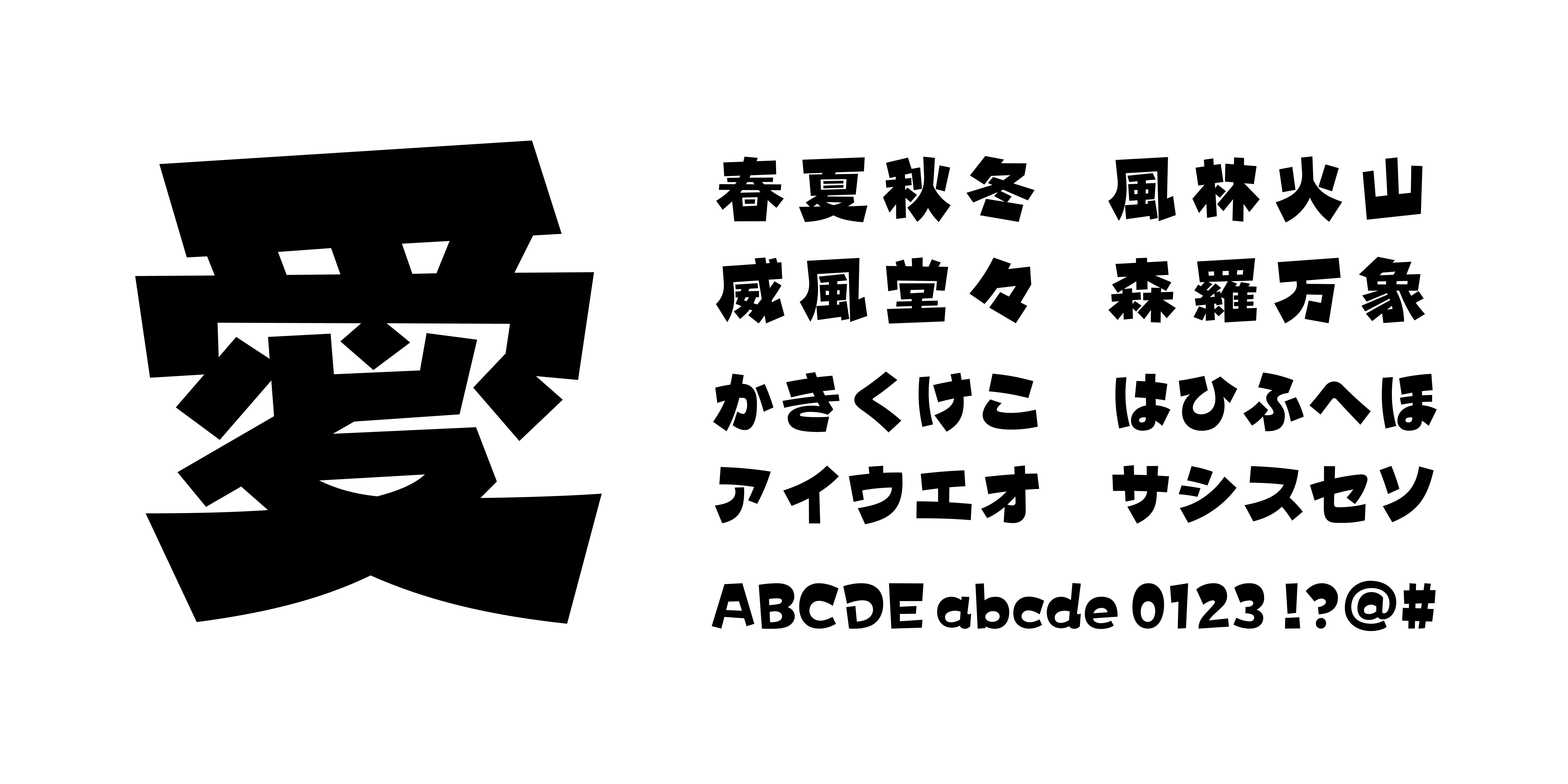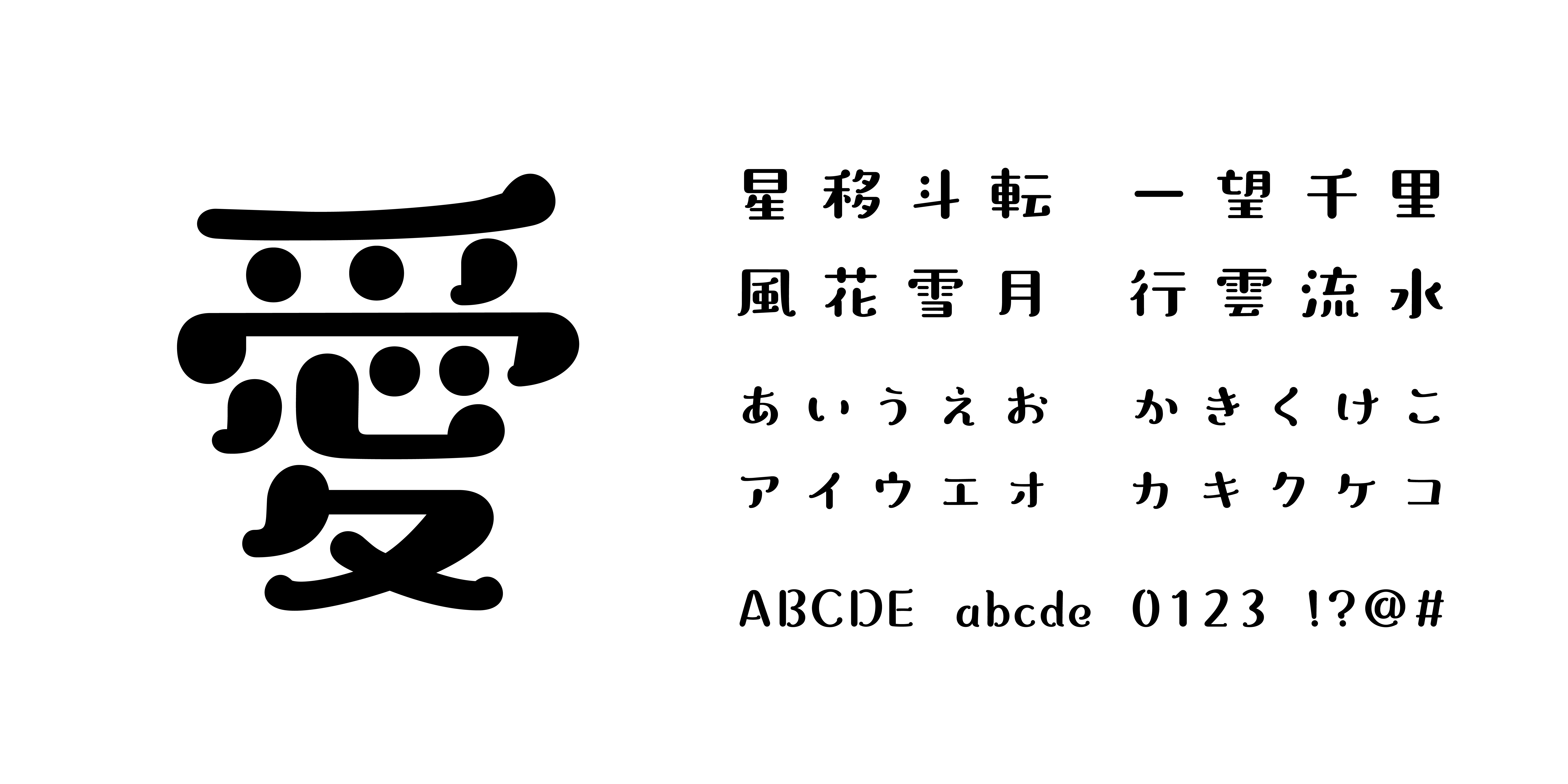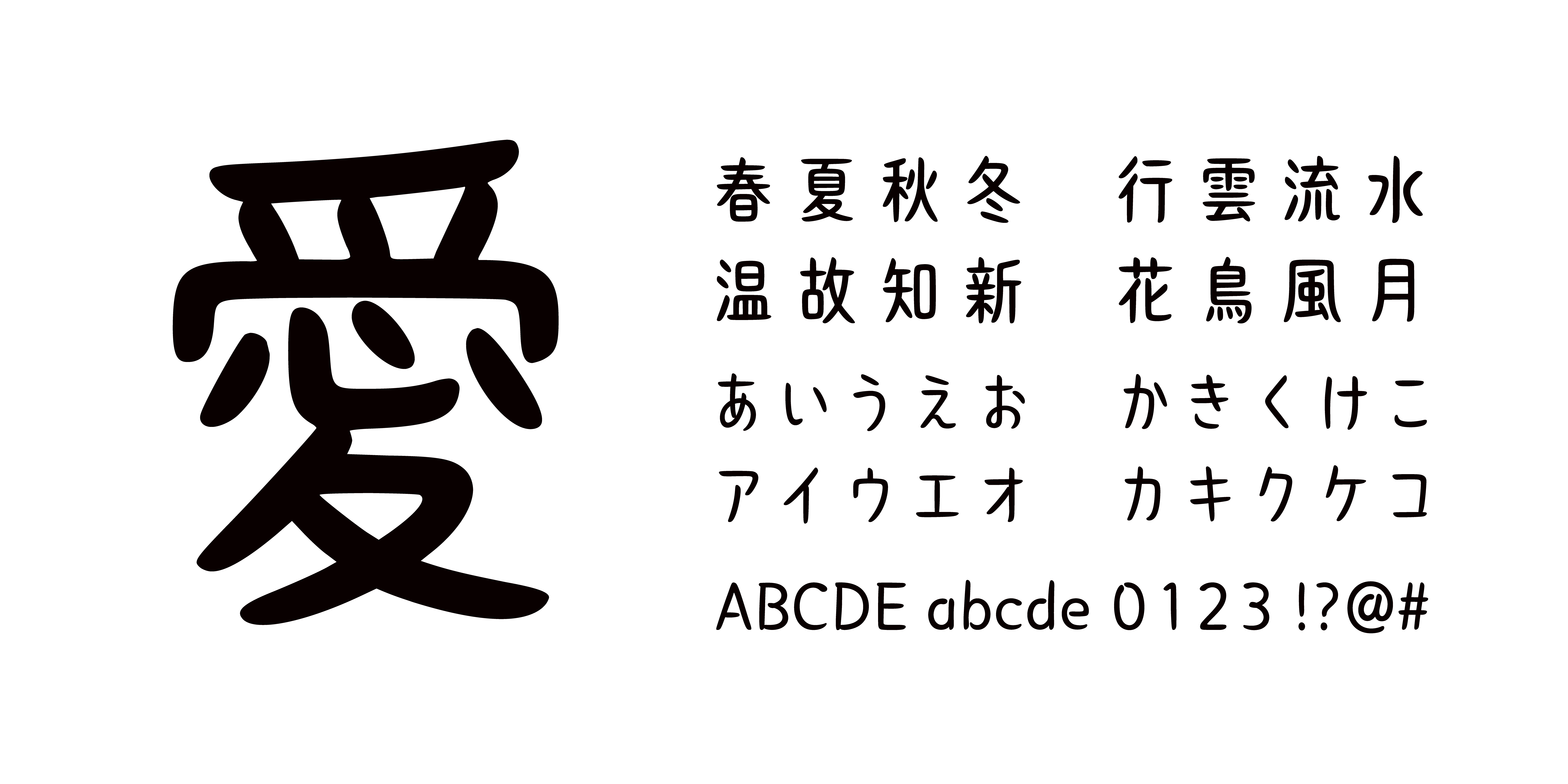 漢字はM Cute HKをベースにし、仮名もそのスタイルを踏襲しつつ、個々の文字がそれぞれ個性的な表情を持っています。