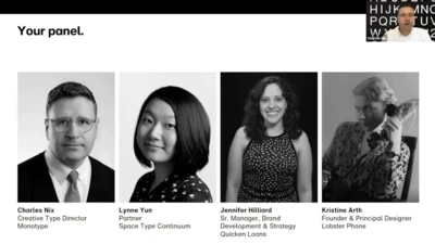 Charles Nix, Creative Type Director at Monotype, moderates a lively discussion with esteemed panelists Kristine Arth, Founder & Creative Director at Lobster Phone; Lynne Yun, Partner at Space Type Continuum; and Jennifer Hilliard, Senior Manager, Brand Development & Strategy at Quicken Loans. Watch the group discuss how they’ve adapted and uncovered opportunities during these unique and uncertain times. Learn more about Brand Talks here.