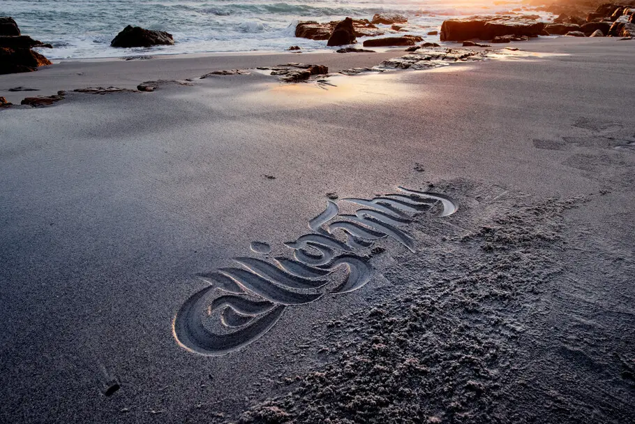 Beach calligraphy has been extremely valuable and meaningful to me as a calligrapher because it’s taught me to value the process over the end result. The ocean gives you a clean slate, an opportunity to try again.