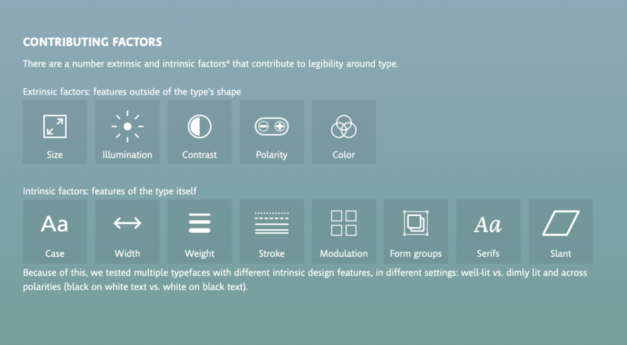 But if one of those steps in the process slows down or hits an obstacle, our reading slows down with it. This may not matter in some cases — a deliberately obfuscated headline in a magazine, perhaps — but it matters a lot in digital or quick glance use cases, or in extended reading environments where you want the reader immersed in the story.
