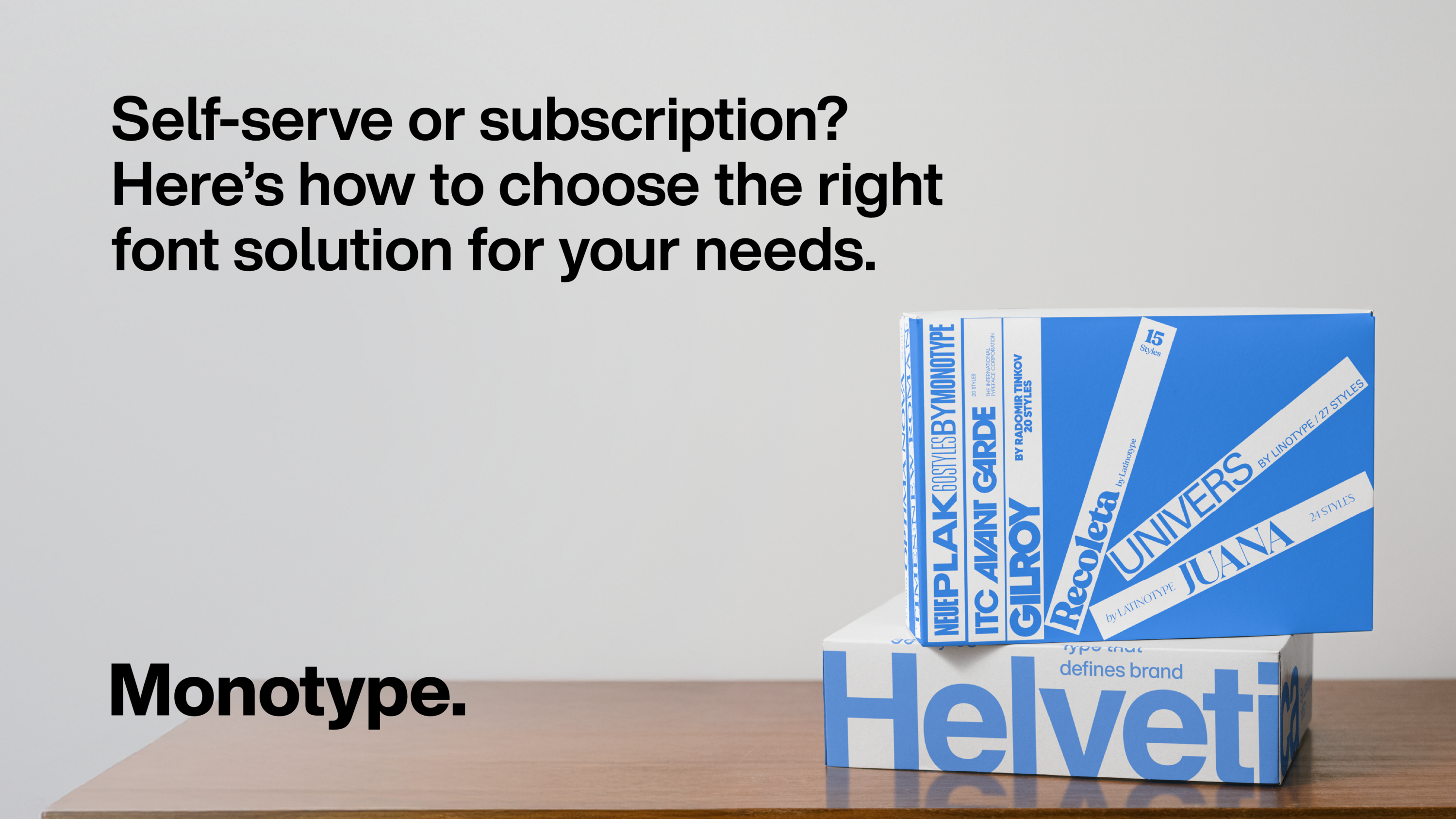 As your team expands, so do your font requirements. Buying fonts one by one means juggling multiple licenses — each with its own fine print which needs to be interpreted, tracked, and enforced. This can quickly become a logistical headache, especially when budgets fluctuate and usage changes across projects or channels. Monotype Fonts simplifies things with a single, flexible license covering diverse fonts, from world-renowned foundries to niche independent artists.