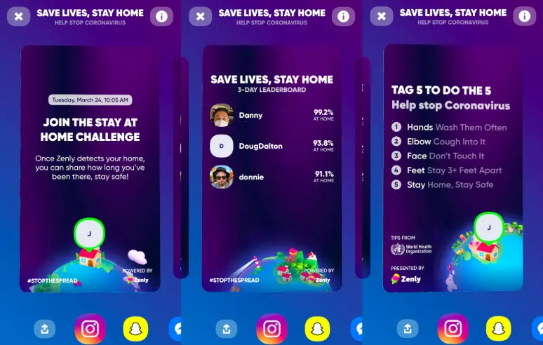Zenly is a location-sharing application that was acquired by Snapchat in 2018. Like other location-based technology, “stay at home” orders across the world have rendered the traditional functionality temporarily less useful. And so, the team at Zenly took a creative approach to help gamify the task of isolation, launching a Stay At Home challenge which includes a leaderboard showing which of a user’s friends have spent the most time doing their part at home.