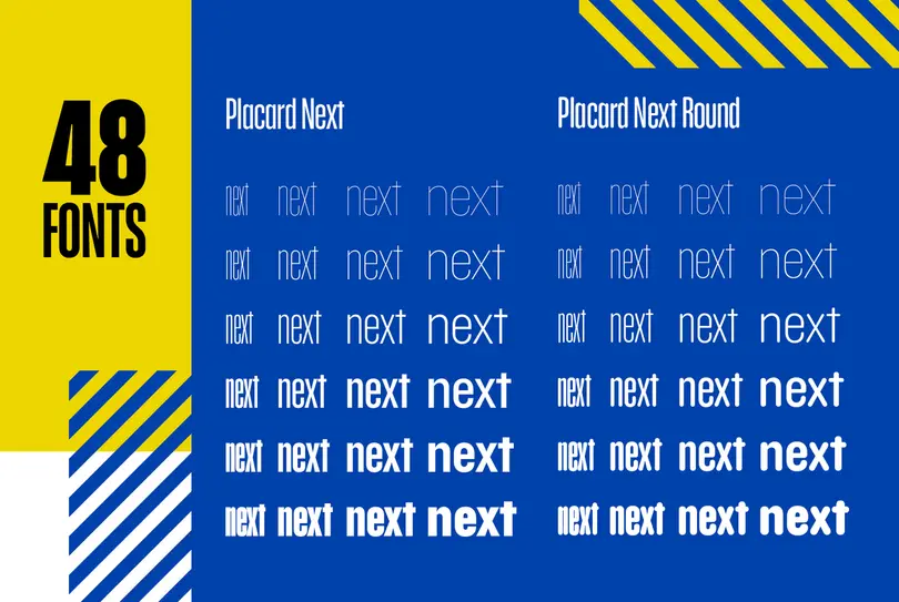 Featuring 48 fonts, the Placard Next family is a wonderful collection of display types with a wide range of options